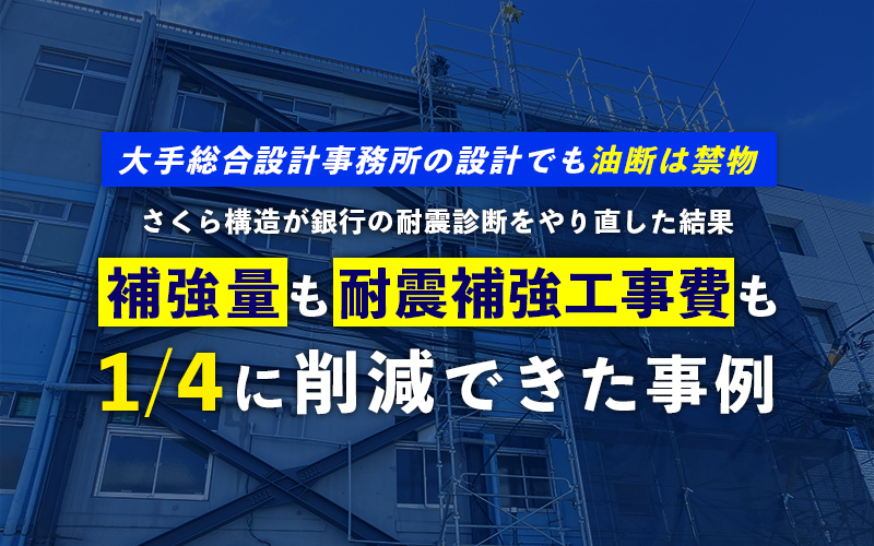 これからお話しする内容は、さくら構造が銀行の耐震補強設計を見直してほしいとスーパーゼネコンより依頼を受けた事例です。