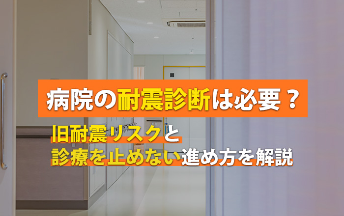 本記事では、病院・医療施設の耐震診断がなぜ必要なのか、耐震リスクを整理し、診療を止めずに進めていく流れを、医療BCP(事業継続)の視点も交えて解説します。