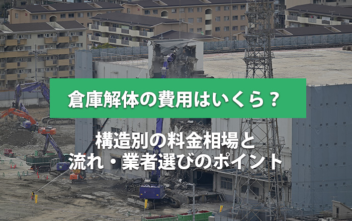 老朽化した倉庫の解体を検討している事業者にとって、「費用はどれくらいかかるのか」「どんな手続きが必要か」「業者選びで失敗しないためには」といった疑問は尽きません。倉庫解体は住宅解体と異なり、規模が大きく専門的な知識が必要となるため、事前の情報収集が重要です。本記事では、倉庫解体にかかる費用相場を構造別・規模別に解説し、解体の流れ、法的注意点、業者選定のポイントまで、実務に役立つ情報をお届けします。